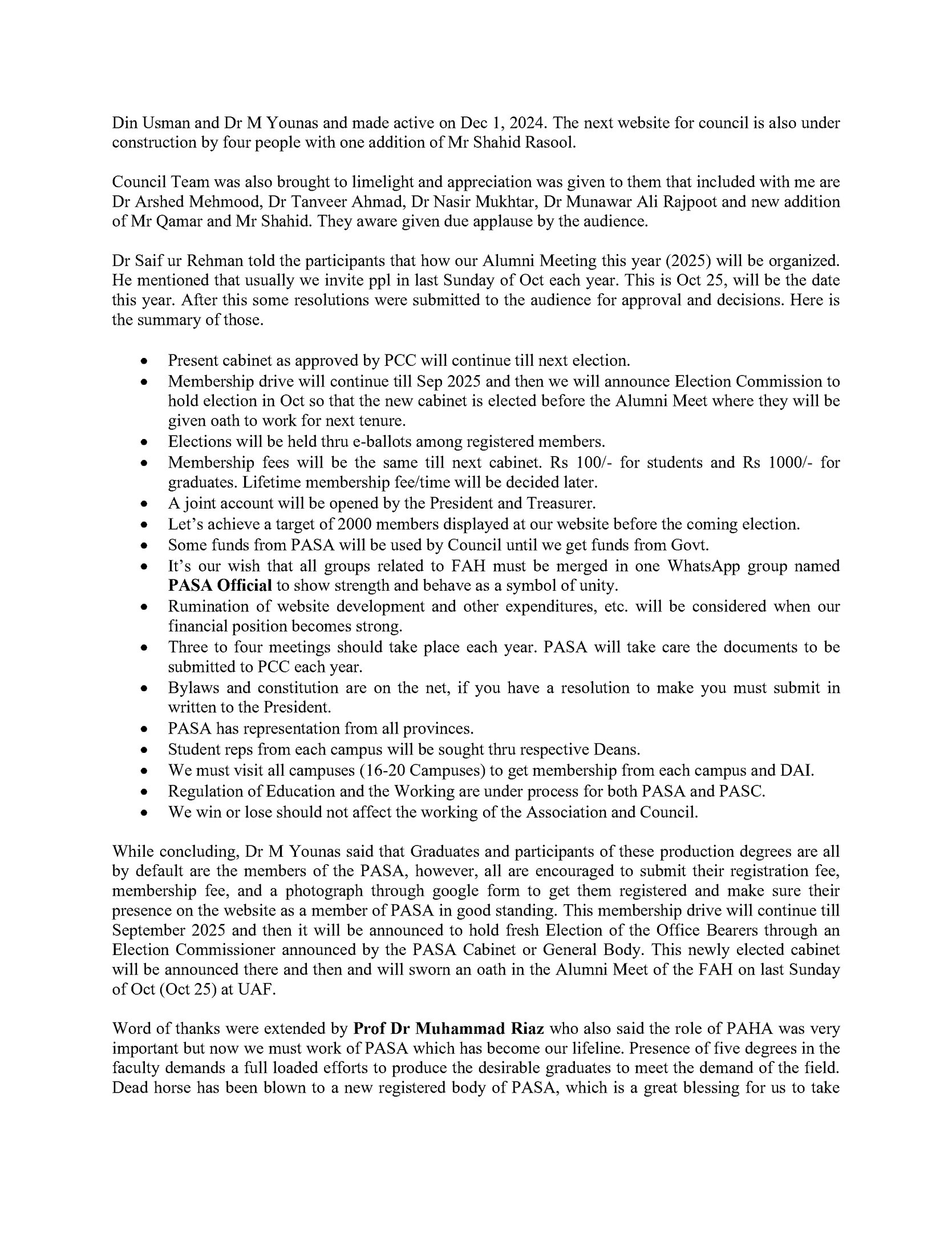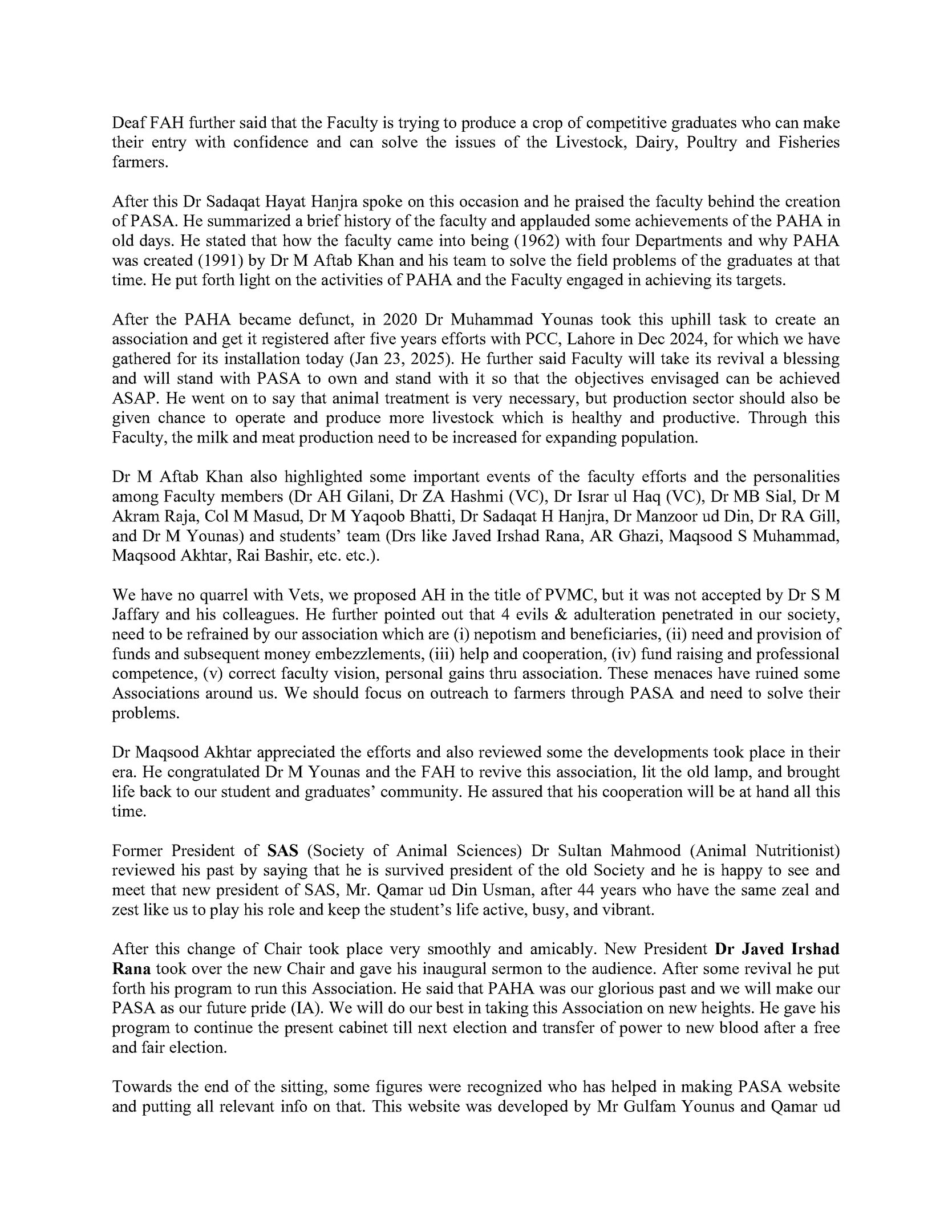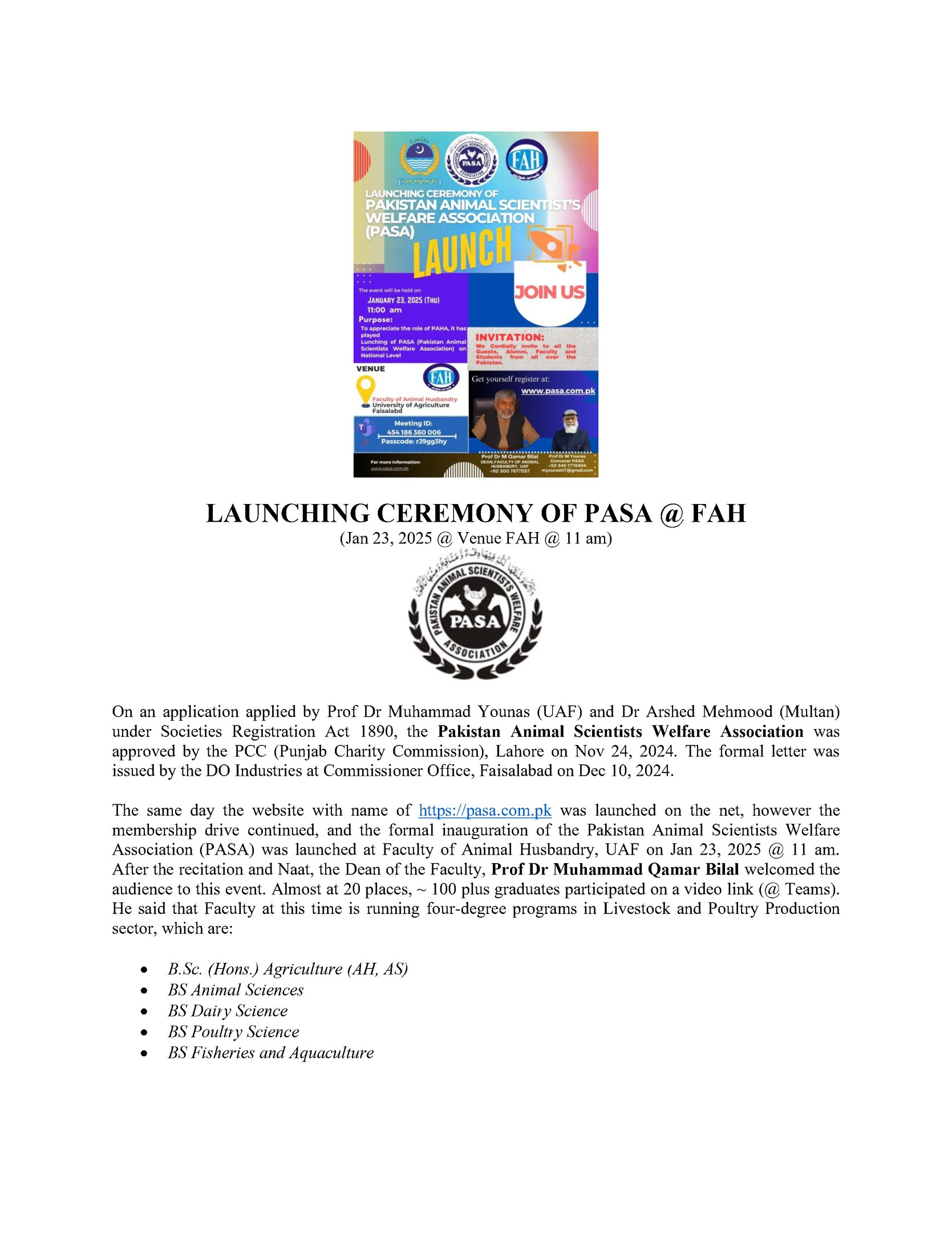 Inaugural Meeting of PASA at UAF 23-01-2025
